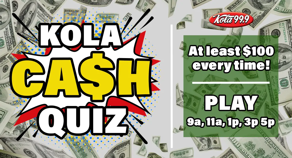 KOLA Cash Quiz is your shot at fast, instant cash! Test your skills 5 times each day, answer the question correctly and win an instant $100!
